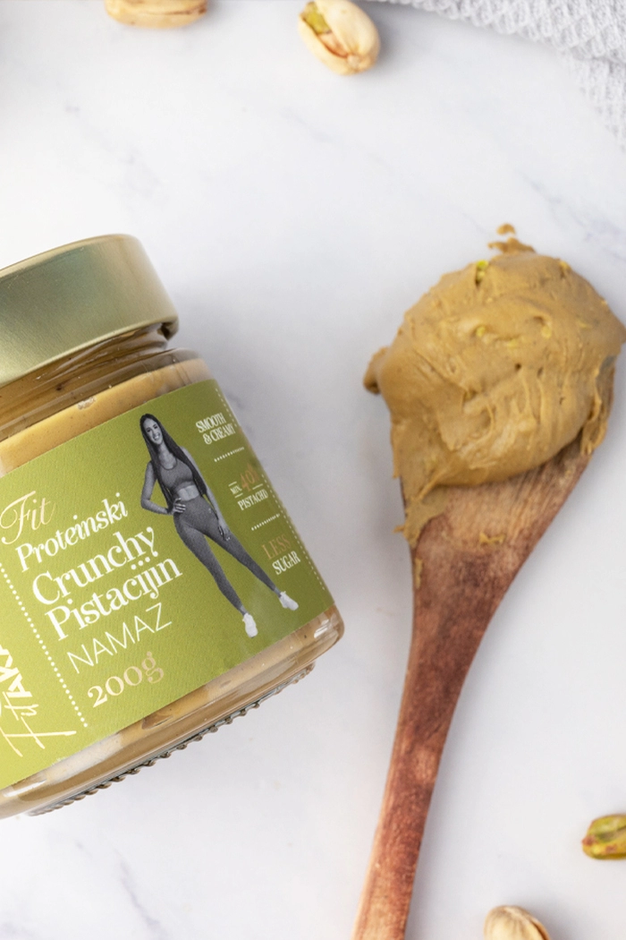 Proteínová nátierka BAM Crunchy Pistachio kombinuje viac ako 40 % pistácií s pridanými výživnými bielkovinami, čo znamená, že každé sústo ponúka intenzívnu pistáciovú chuť a úžasnú chrumkavú štruktúru. Je ideálna kedykoľvek, keď potrebujete energiu - či už po tréningu, počas pracovného dňa alebo na výlete. Natrite si ho na toast, pridajte do smoothie alebo si ho vychutnajte priamo z pohára. Proteínová nátierka BAM Chunky Pistácie s jemnou chuťou a výživovými hodnotami je ideálnym spôsobom, ako si dopriať sladkú pochúťku bez pocitu viny a zároveň dodať telu bielkoviny.