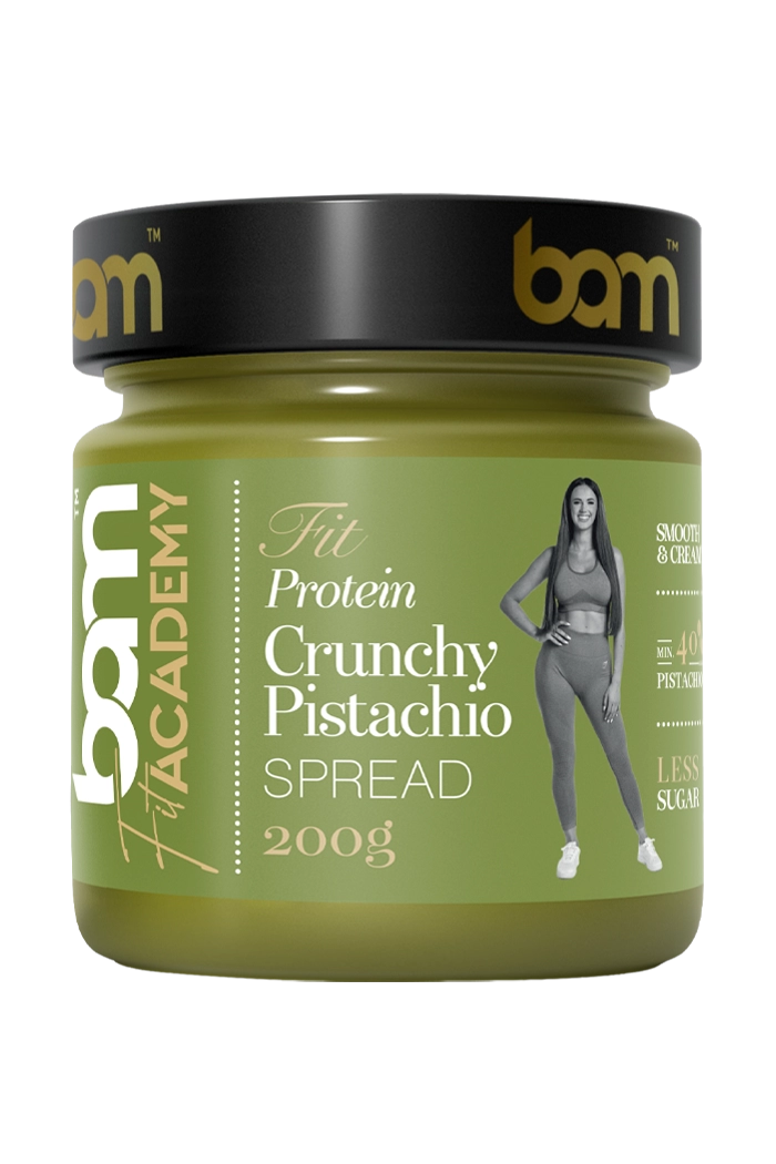 Kolekcia BAM fit kombinuje starostlivo vybrané ingrediencie vynikajúcej kvality a skvelej chuti, aby vytvorila dokonalé občerstvenie a pokrmy. Táto kolekcia zahŕňa aj chrumkavú pistáciovú proteínovú nátierku BAM, ktorá prináša dokonalú kombináciu chuti a výživy.