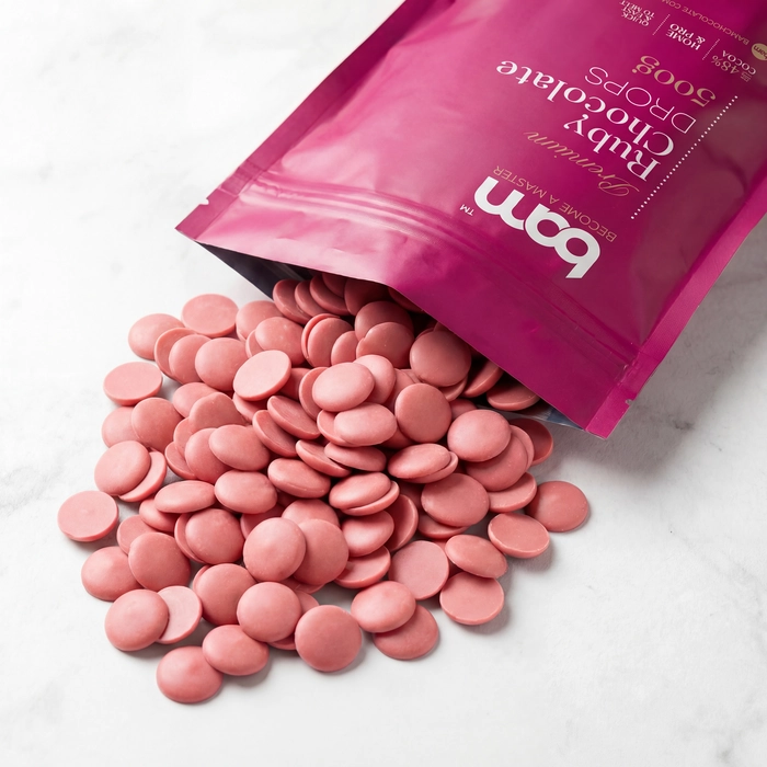 Čokoláda BAM Ruby (500 g) je výnimočná svojou prirodzenou ružovou farbou, ktorá nie je spôsobená farbivom, ale pochádza z jedinečného druhu kakaových bôbov. Toto kakao rastie vo vybraných oblastiach sveta a produkuje čokoládu, ktorá je úplne odlišná od klasických druhov čokolády.
