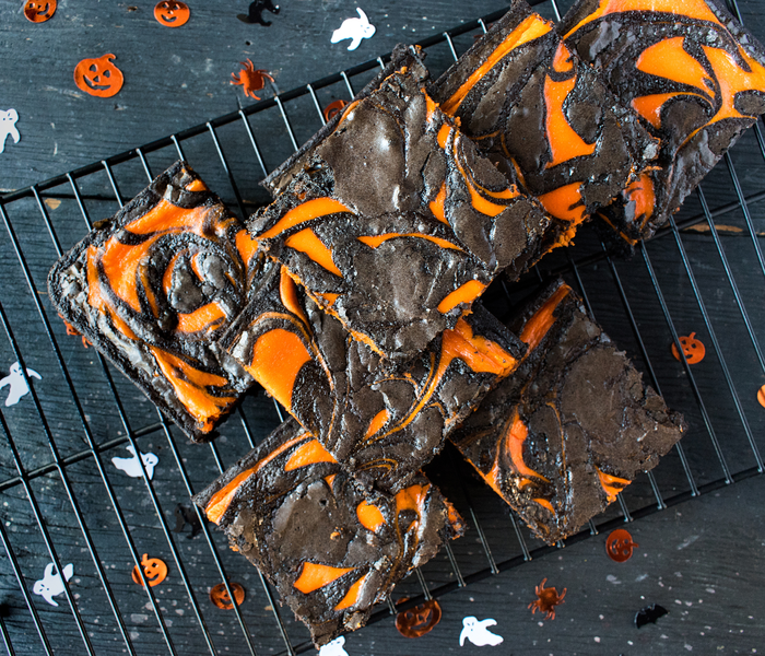 Po vychladnutí môžete koláčiky nakrájať na štvorce alebo iné tvary. Vychutnajte si lahodné halloweenske čokoládové brownies s pomarančovou čokoládou!