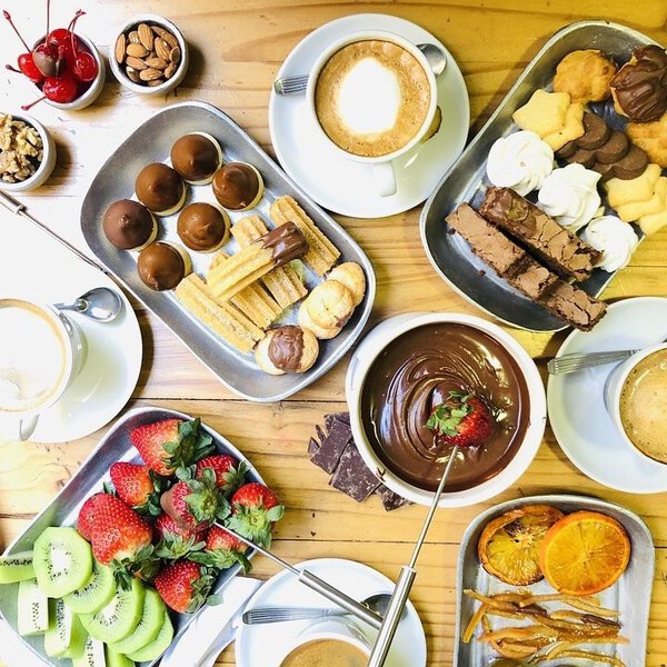 Recept na teplé čokoládové fondue s kúskami ovocia.