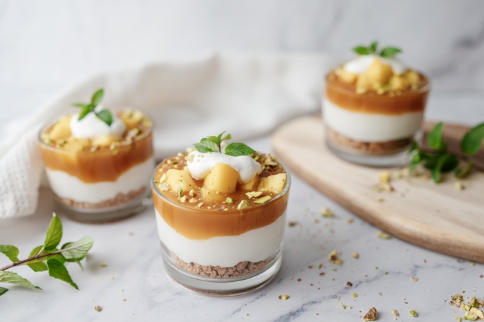 @bamchocolate.com Mango Cups with Charmed cream ? This is a dessert in a glass that combines creaminess and freshness in every bite. These dessert cups with magic cream and mango are light, quick to prepare, and visually impressive. BAM magic cream creates a smooth base, while BAM pineapple mango topping adds a refreshing tropical flavor. ?Ingredients • 150 g BAM magic cream • 200 ml milk • BAM pineapple mango topping • 100 g roughly crushed biscuits • 1 ripe mango • 50 ml whipping cream • 30 g ground pistachios • fresh mint leaves Preparation Cream base: Whip the BAM magic cream with milk until light and smooth. Layering: Layer biscuits, magic cream, BAM pineapple mango topping, and fresh mango in glasses. Finish with whipped cream, ground pistachios, and fresh mint. Save for later and keep a quick dessert idea ready anytime. #bam #becomeamaster #dessertcups #quickdessert #mangodessert